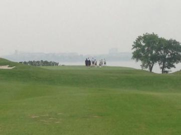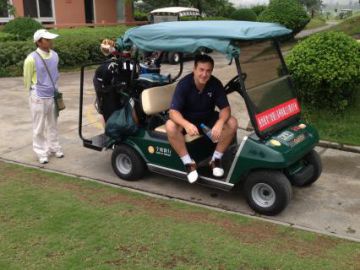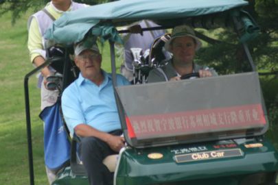 2013_champsHolding a 2 shot lead on Tianma's par 3, 17th tee, Keano stuffed his tee shot to 2 feet.   Dr. D calmly tapped in the birdie/net eagle to effectively close out the 2013 Crab making Keano the first Crab to successfully defend his championship.