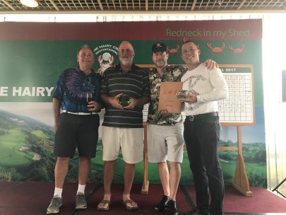 A round of inept overtime chipping could not settle the Toilet Bowl which was shared by Boom Chucka Lucka/Hamilton Chris and Pong/Gosling.   Marky Loo/Russell in the Bush rounded out the winners with a Toilet Bowl 3rd.